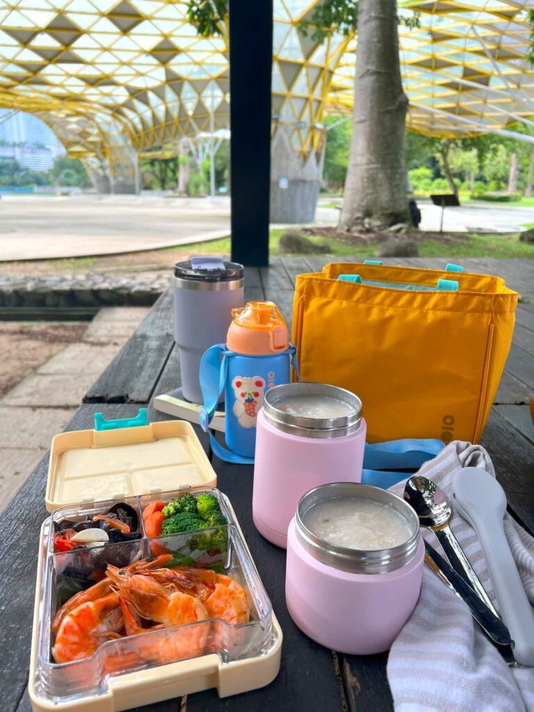 This picnic was our first time trying out OiYO’s new Mealtime Companion collection. The two-sized insulated pods were the perfect size for our mummy-and-me congee.