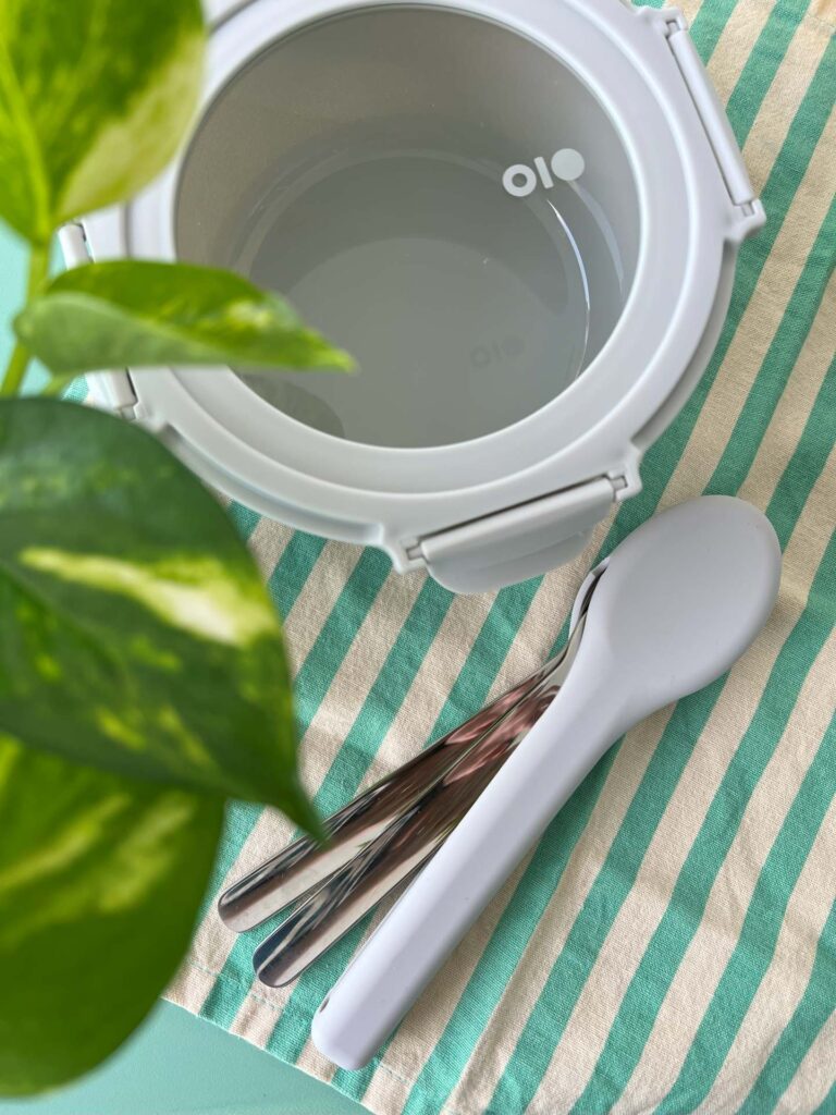 PS. Add on the cutlery set for an aesthetically on-point combo! The stainless steel fork and spoon are conveniently nestled in a heat-resistant silicone cover.